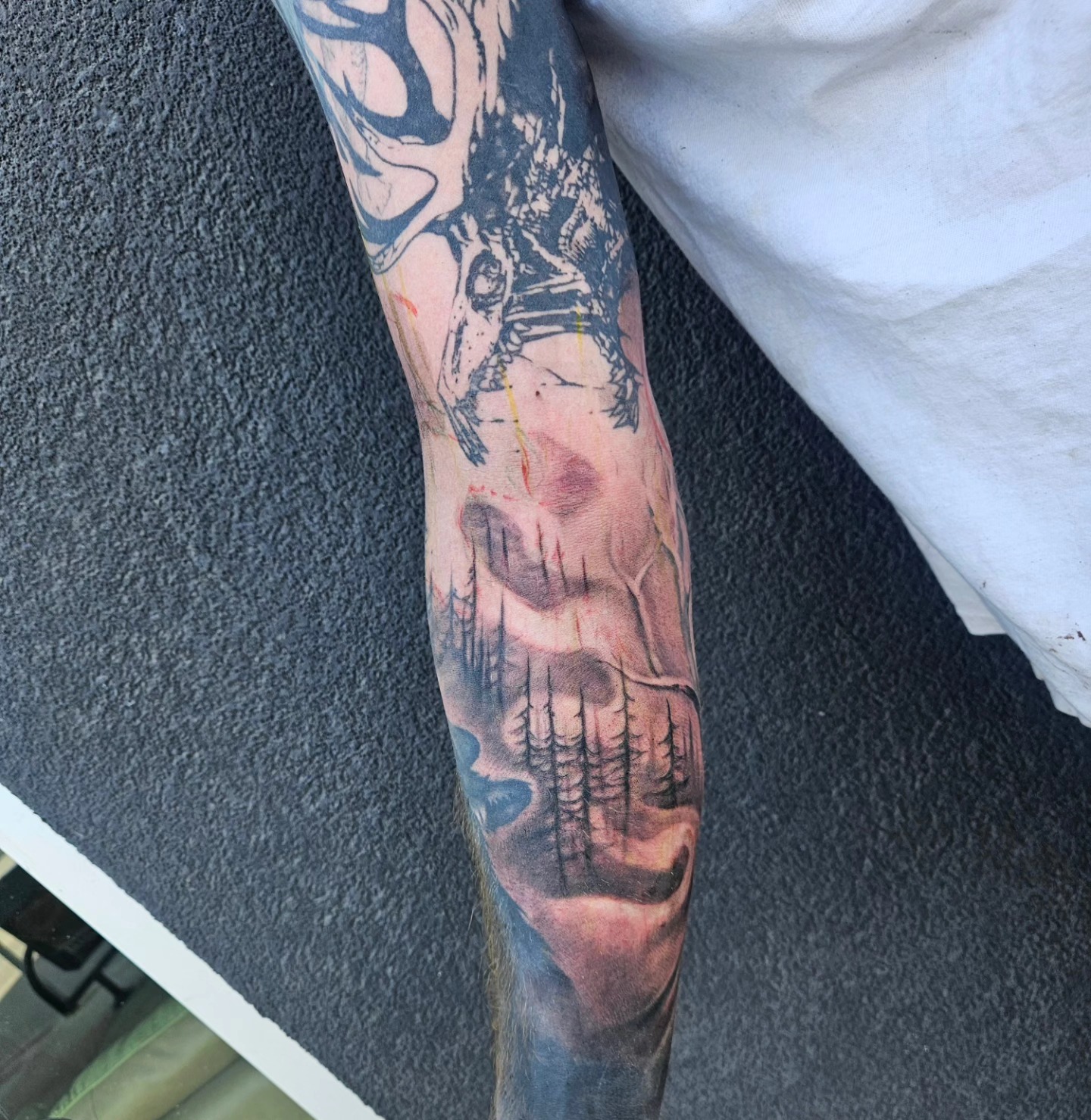 around existing pieces, tricep/inner bicep area, sharpie drawing