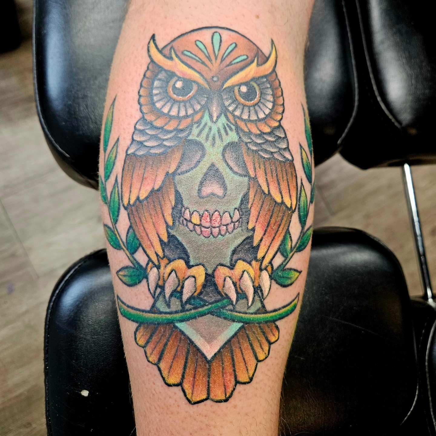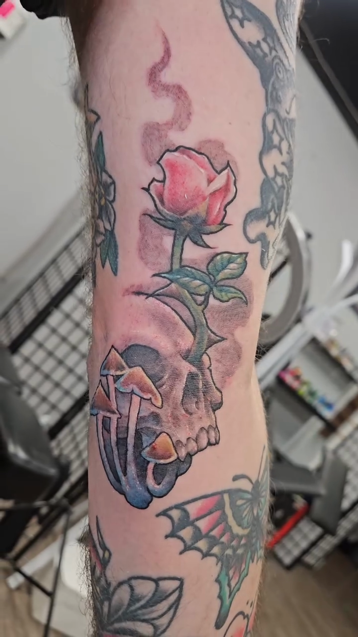🚨 Snail Birdskull Knee Tattoo 🚨