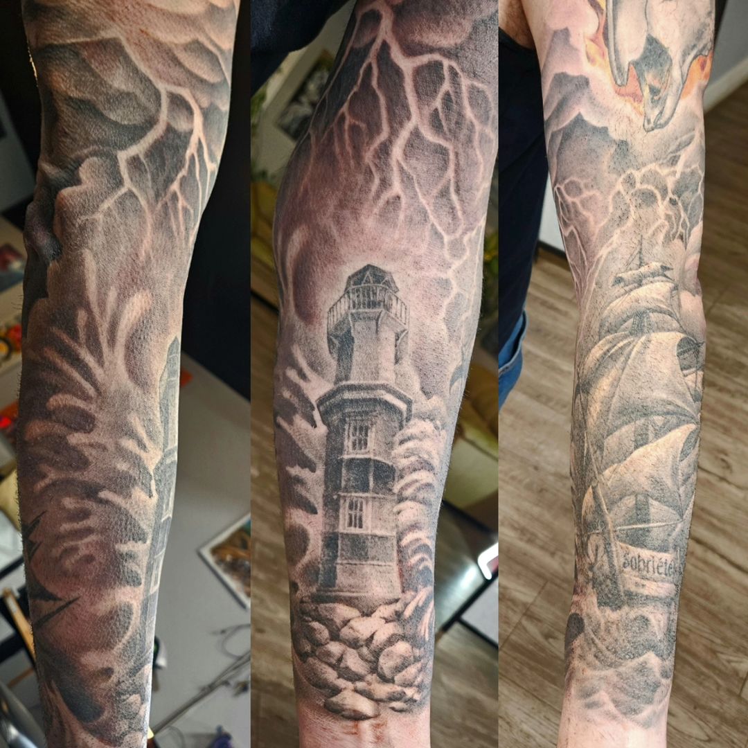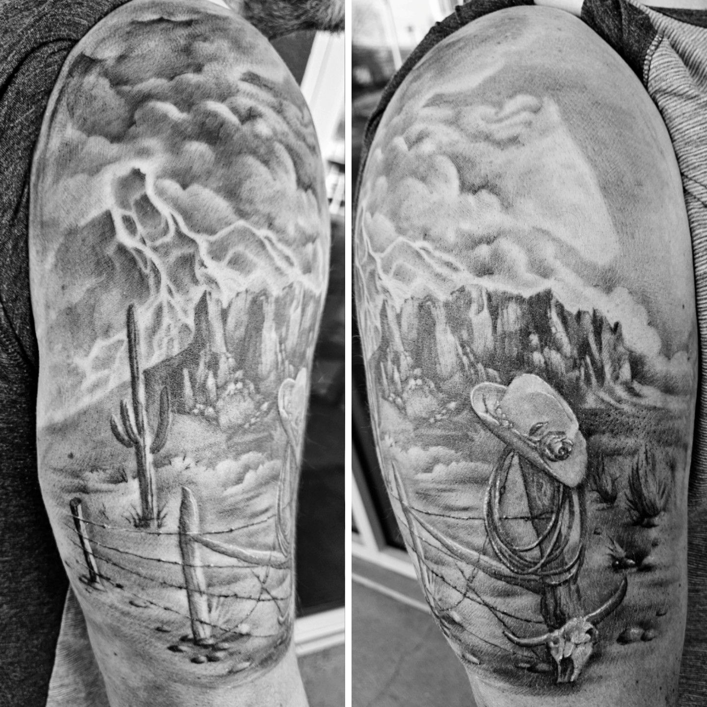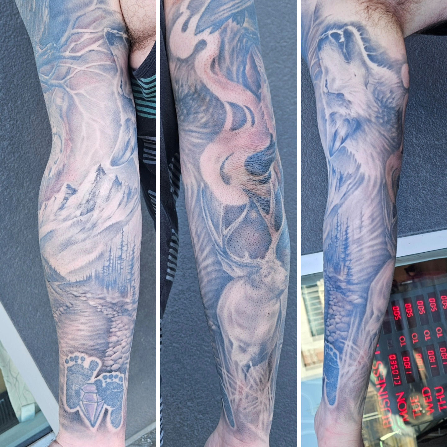 above the elbow, start to a nature half sleeve. 🌲 🏔 ☀️