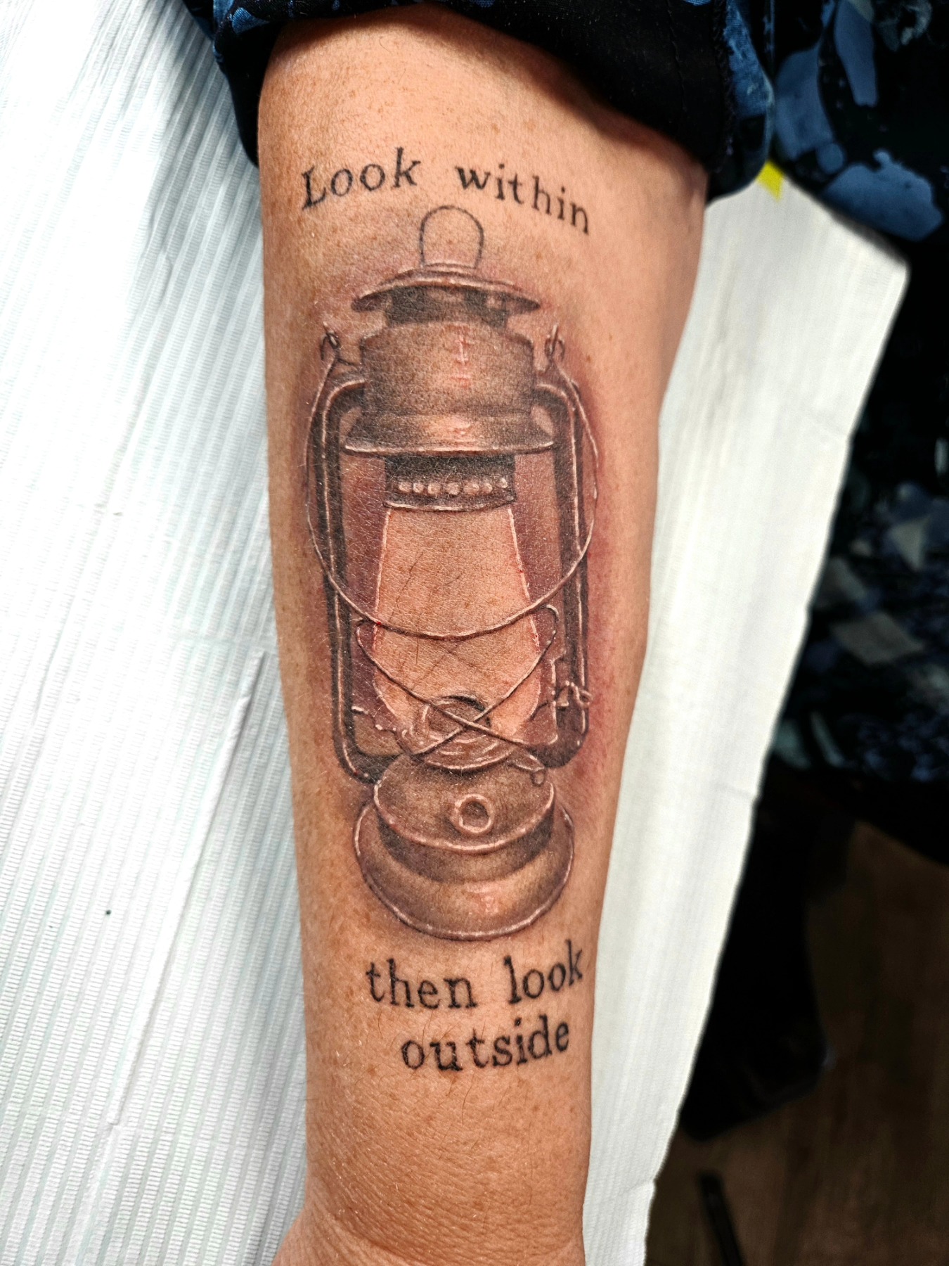 Memorial Tattoo for Clientโs Father of his Old Lamp